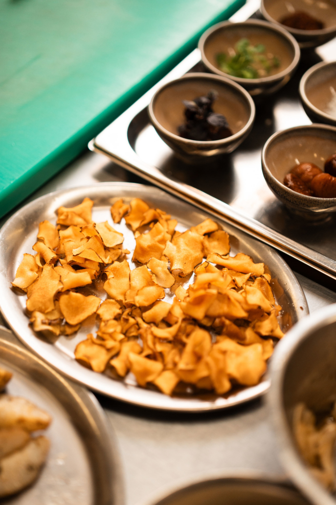 Topinambur ist ein Wurzelgemüse, das oft vergessen geht. Im veganen Dreigänger zeigt Roni Secilmis, wie er die aromatische Wurzel auf vier verschiedene Arten zubereitet und ihr damit klar die Hauptrolle in diesem Spektakel zuordnet.